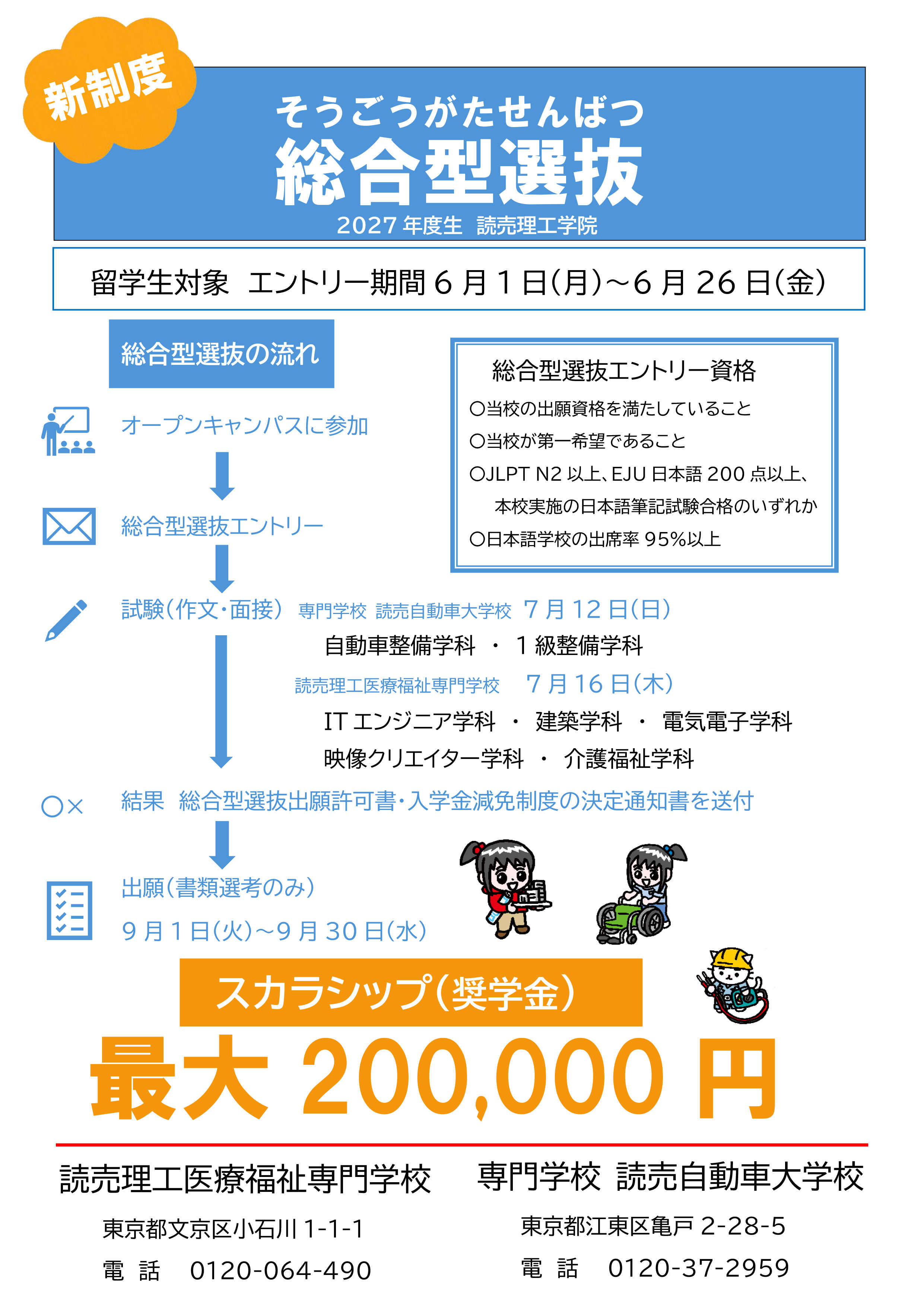 総合型選抜制度は、読売理工学院への入学を強く希望し、自分の目標に向かって、やる気や熱意を持っている方を高く評価します。
